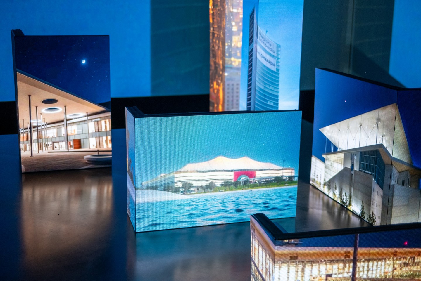 Participatory Scenography: immersive settings allow visitors to walk in water behind a digital dam, board subway cars that replicate cities around the globe, traverse tunnels and suspended bridges, and explore digital cityscapes transitioning between day and night.