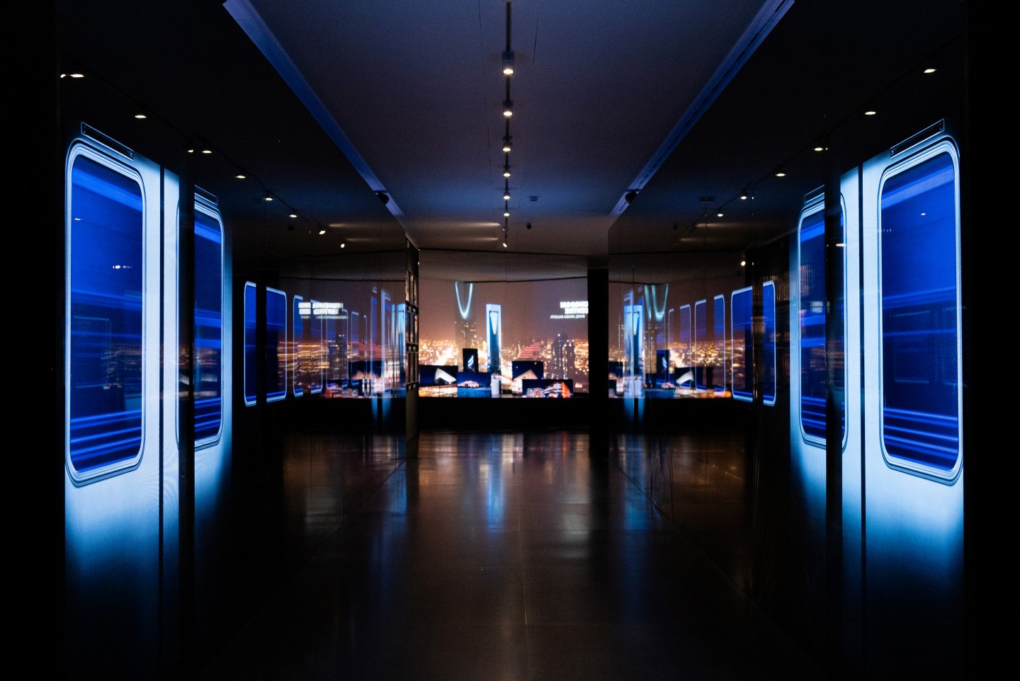 Participatory Scenography: immersive settings allow visitors to walk in water behind a digital dam, board subway cars that replicate cities around the globe, traverse tunnels and suspended bridges, and explore digital cityscapes transitioning between day and night.