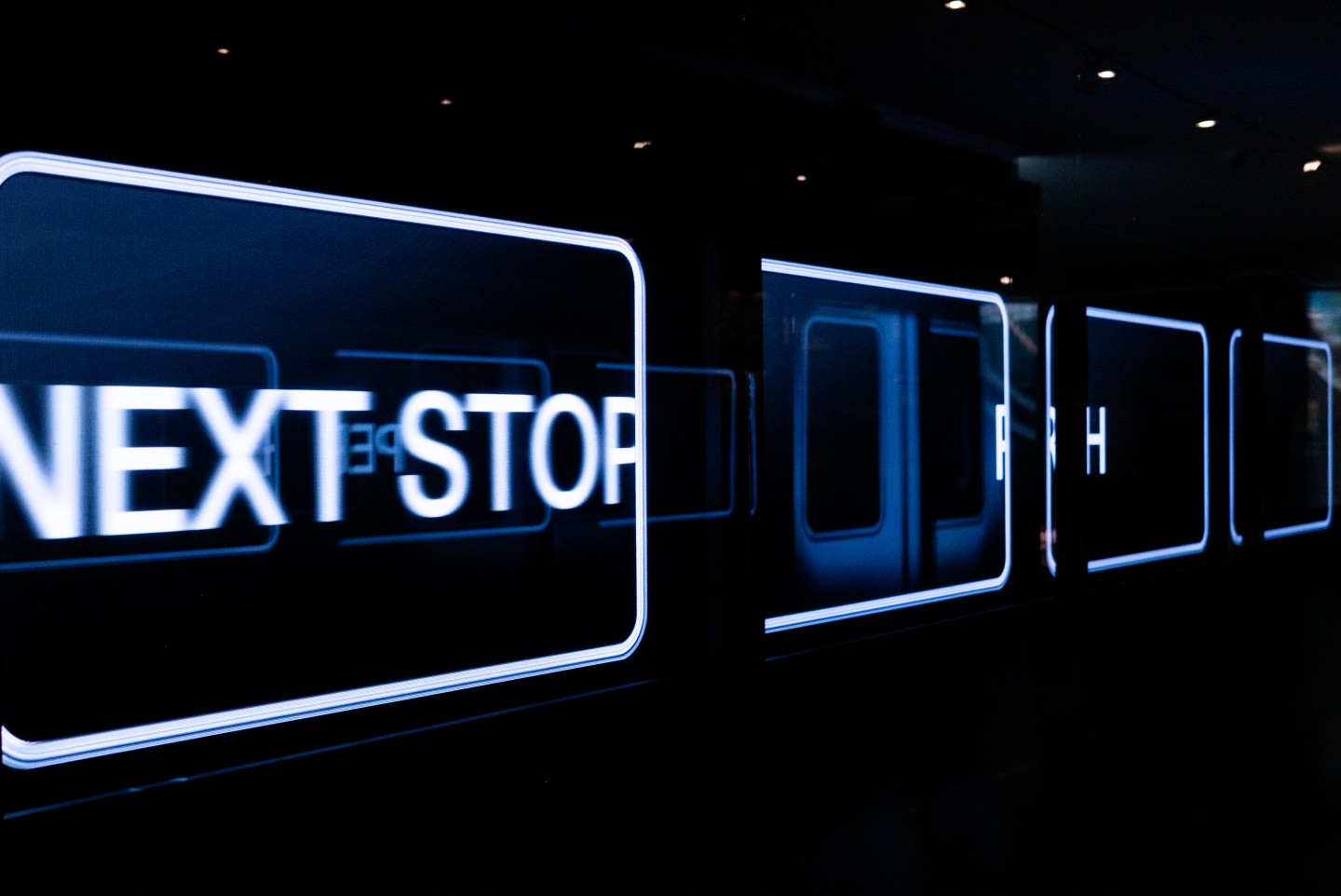 The Interactive Metro: subway lines displayed on illuminated plexiglass panels demonstrate how cities evolved and connected across time.