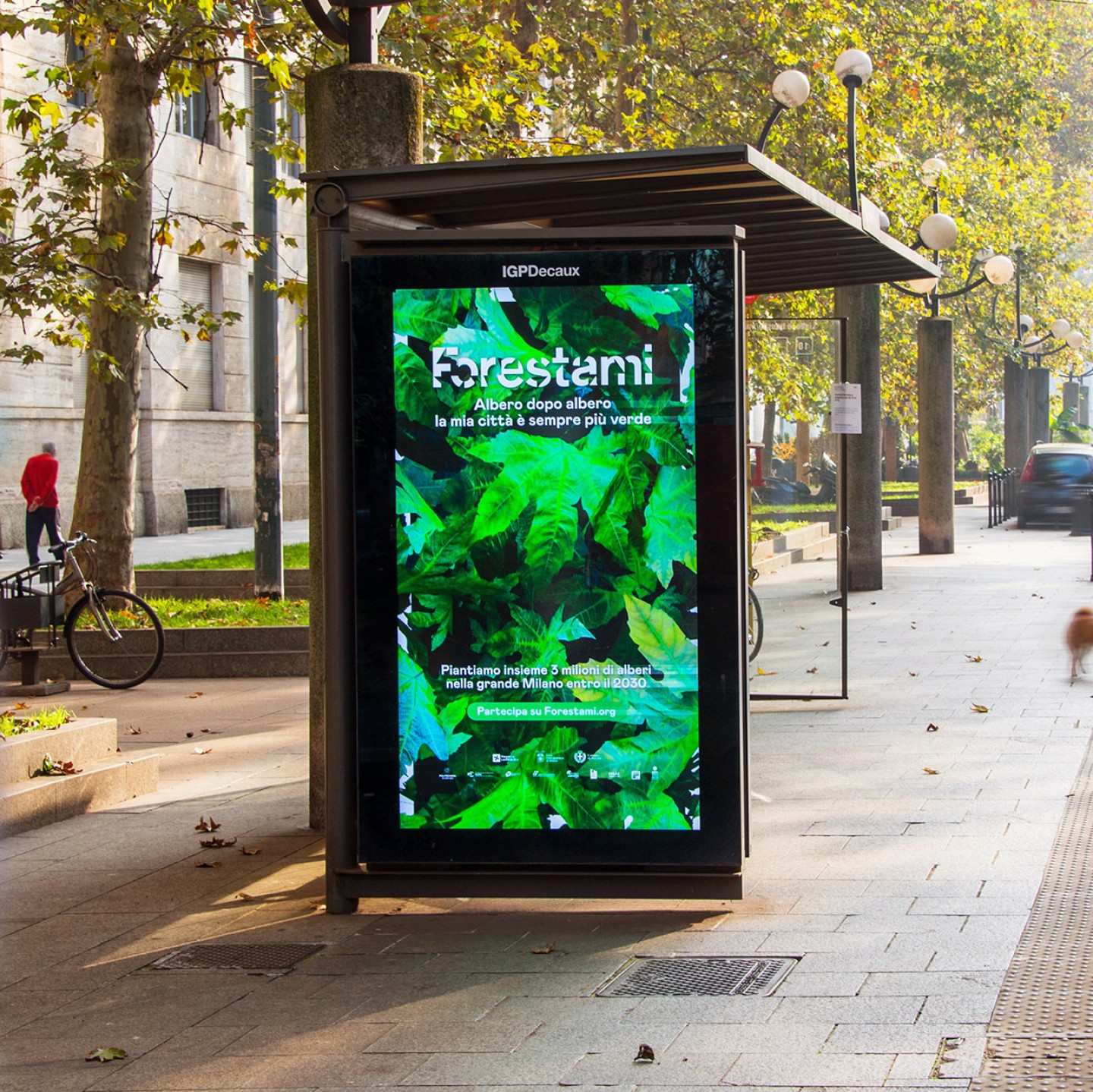 Our communication campaign fuses digital media and OOH advertising to create an immersive visual experience, capturing the transformative power of urban nature. Key messages guide this journey: "Tree by tree, my city is becoming greener", "Let’s plant 3 million trees in greater Milan by 2030".